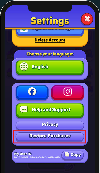 Progress can be restored if you signed in with Apple or Google